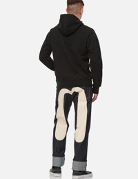 2ESHTM2JE91000CT Daicock jeans are a signature style for EVISU. This pair is made from pure cotton denim and printed with ecru Daicock across the back panel. Cut for a relaxing straight fit to channel a retro vibe, the pair is versatile with sweatshirts in your casual line-up. - Raw denim - 2000 Straight fit - Daicock print - 5 pockets - Button fly - Godhead leather patch - 100% Cotton FIT & STYLING: STRAIGHT CUT CARE MACHINE WASH COLD INSIDE OUT AND SEPARATELY GENTLE CYCLE DO NOT BLEACH HANG DRY ONLY COOL IRON ON REVERSE SIDE IF NEEDED STEAM IRONING MAY CAUSE IRREVERSIBLE DAMAGE DO NOT DRY CLEAN DO NOT IRON ON PRINT