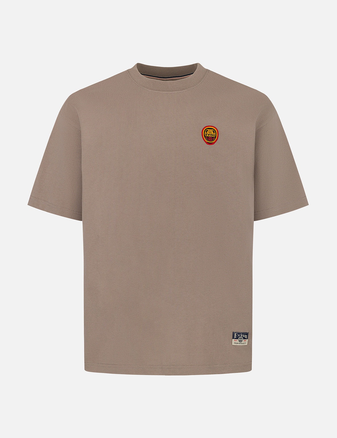 2ESHTM5TS1245RXCT This T-shirt showcases unique personality with its minimalist design featuring a cleverly integrated embroidery of Daruma and the EVISU logo on the chest. It not only embodies the essence of Eastern Zen but also highlights the brand's iconic streetwear attitude. The exquisite embroidery craftsmanship pairs perfectly with the soft, comfortable fabric, making it ideal for trendsetters who pursue both quality and style. - Relax fit - 100% Cotton - Daruma and logo embroidery