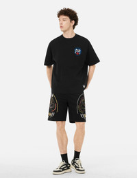 2ESHTM5TS1208LFCT Own the streets in this effortlessly stylish black tee. The timeless silhouette is elevated with a bold Daruma embossed print, subtly fused with a Kamon for a touch of modern artistry. Wear it with confidence and let your style speak volumes. - Loose fit - 100% Cotton - Daruma emboss print - EVISU Premium Quality Kamon tag