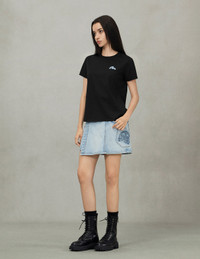 Deconstructed Denim Applique Embroidery Regular Fit T-Shirt