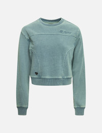 2EAHTW4SW4112FFCT This cropped sweatshirt, treated with a washed effect, is filled with design details, featuring different streamline stitching lines, along with logo and Seagull applique embroidery. The intentionally distressed edges add a unique touch to the garment, showcasing a distinctive style. - Fashion fit - 62% Cotton, 38% Polyester - ogo and Seagull applique embroidery - Streamline stitching lines - Washed and distressed details