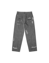 2EAGNM5PT5067RXCT These pants in a gray tone embody a raw street edge! The distressed print design infuses a rebellious vibe, paired with the EVISU logo and seagull embroidery for a distinctive fashion layer, unleashing urban free-spirited charm the moment you wear it! - Relax fit - 100% Cotton - Distressed print - Seagull and logo embroidery - Zip fly, 5 pockets