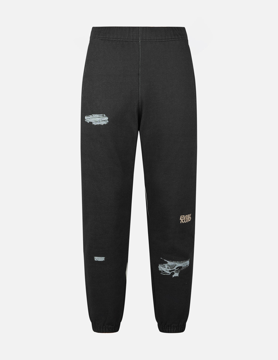 2ESGNM5SP5011RXCT With a relaxed cut, EVISUKURO offers a sleek and casual style that does not compromise on comfort. The pants showcase logo embroidery and distressed prints on the legs, complemented by seagull embroidery on the back pockets. This minimalist and adaptable design allows for easy styling with T-shirts or sweatshirts, making a fashionable statement. - Regular fit - 100% Cotton - Distressed prints - Seagull and logo embroidery - Elasticated waistband and cuffs