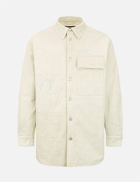 2EAGNM2SJ739LFDN Look effortlessly cool in this cleverly designed shirt jacket from EVISUKURO. It is crafted with embossed mixed graphics as well as logo and slogan prints to to give your street outfit a retro twist. - 99% Cotton, 1% Spandex - Loose fit - Embossed mixed graphic - Seagull embroidery - Logo leather patch