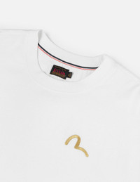 2EAHTM5TS1183RXCT This T-shirt in pristine white radiates a fresh, modern avant-garde charm! The lightweight seagull embroidery dances across it, adding artistic flair. With a relaxed wide-fit design, it’s both comfortable and stylish—wear it to effortlessly lead the trendsetting wave! - Relax fit - 100% Cotton - Seagull embroidery - EVISU Premium Quality Kamon tag
