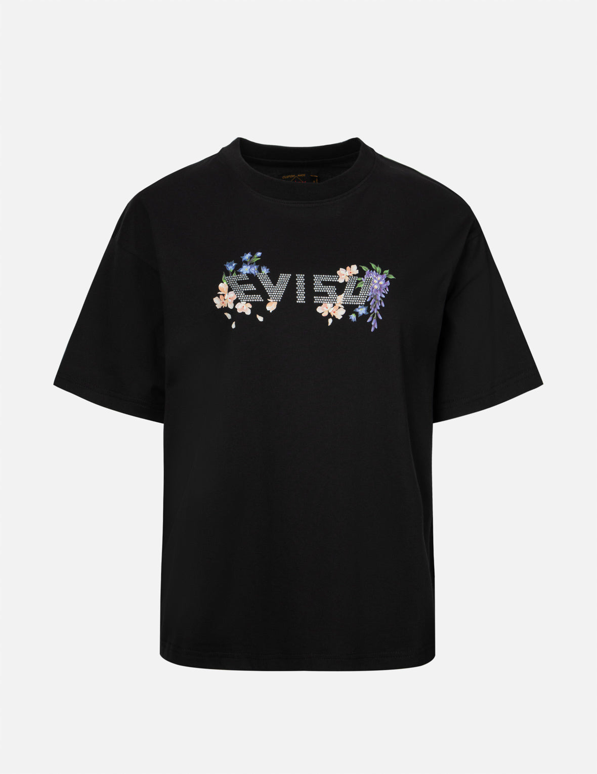 2ESHTW4TS4084OSCT This T-shirt features a romantic and enchanting purple floral print, complemented by a dazzling Rhinestone EVISU logo, creating a captivating and eye-catching effect. FIT & STYLING: OVERSIZE CARE HAND WASH INSIDE OUT AND SEPARATELY DO NOT BLEACH HANG DRY ONLY COOL IRON ON REVERSE SIDE IF NEEDED STEAM IRONING MAY CAUSE IRREVERSIBLE DAMAGE DO NOT DRY CLEAN DO NOT IRON ON PRINT DO NOT IRON THE DECORATION