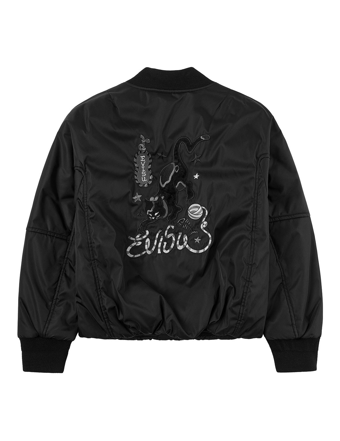 2EAHTW5JK4020FFYQ This jacket ignites the street fashion scene with its all-black cool vibe! Featuring a fresh, individualistic drop-shoulder design, it effortlessly crafts a laid-back street style, perfectly suited for daily wear. The front patch pockets draw inspiration from classic denim designs, adorned with intricate seagull dense-needle embroidery, brimming with detail. The back showcases a rich Japanese-inspired aesthetic with black fuzzy cat applique and logo embroidery, blending layers of depth to unleash a burst of youthful street fashion energy! - Drop-shoulder - 100% Polyamide - Fuzzy Cat applique and Logo embroidery - Seagull embroidered patch pockets - Zip fastening, 2 pockets, ribbed trims