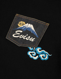 2EAHTM5TS1180RXCT This exquisite T-shirt masterfully weaves the elegance of Japanese heritage with contemporary fashion allure! The back showcases a striking Godhead lion dancer print, infused with deep cultural elements and a refined, whimsical design that captivates. Adorned with a denim pocket on the front, featuring Mount Fuji and a signature logo print, it marries vintage sophistication with luxurious texture. - Relax fit - 100% Cotton - Godhead lion dance print - Mount Fuji and logo print - EVISU Premium Quality Kamon tag