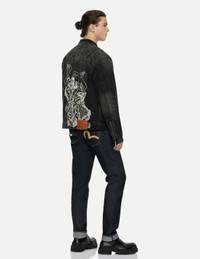 GODHEAD PRINT RELAX FIT BIKER DENIM JACKET