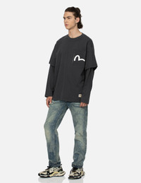 2EAHTM4TL8052LFCT This EVISU T-shirt features a zipper chest pocket and a seagull graphic print on the front, creating a casual, sporty aesthetic. In contrast, the back displays a large Godhead slot machine print, blended with Japanese flag motifs and festival elements, exuding a strong Eastern cultural vibe. This makes it a one-of-a-kind trendy piece. FIT & STYLING: LOOSE CARE MACHINE WASH COLD INSIDE OUT DELICATE CYCLE DO NOT BLEACH HANG DRY ONLY COOL IRON ON REVERSE SIDE IF NEEDED STEAM IRONING MAY CAUSE IRREVERSIBLE DAMAGE DO NOT DRY CLEAN DO NOT IRON ON PRINT
