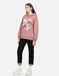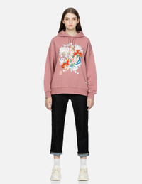 GOLDFISH AND FLORAL FLOW PRINT OVERSIZED HOODIE