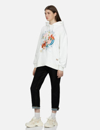 GOLDFISH AND FLORAL FLOW PRINT OVERSIZED HOODIE