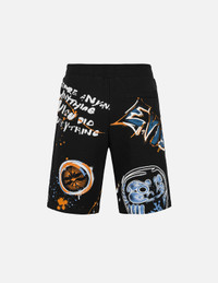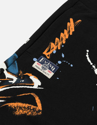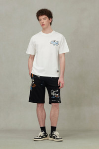 2ESHTM5ST1187XXCT Sweatshorts? The perfect match for casual cool! These short pulls from street vibes, giving off a gritty, easygoing swagger. Blending hand-sketched brand taglines with seagulls, Kamon touches, logo, and bold ink splashes, it’s got that untamed spirit, whipping up a fun, edgy street aesthetic with zero effort. - Regular fit - 100% Cotton - Graffiti design - Seagull, Kamon, logo and ink splash print - Elasticated drawstring waistband, 3 pockets - EVISU Premium Quality Kamon tag