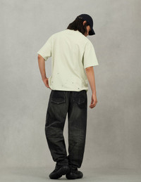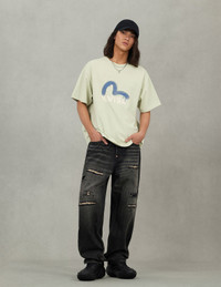 2EAHTM5TS1159RXCT This oversized casual T-shirt is crafted with a pure white base, exuding minimalist street style! The front features a vibrant purple graffiti-style seagull print as the highlight, paired with a striking logo, accented by a splash-ink design for an avant-garde artistic touch. Wear it to effortlessly define your trendsetting attitude and become the street's focal point! - Relax fit - 100% Cotton - Graffiti-style seagull and logo print - EVISU Premium Quality Kamon tag