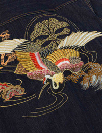Grateful Crane Embroidery Relax Fit Denim Jacket