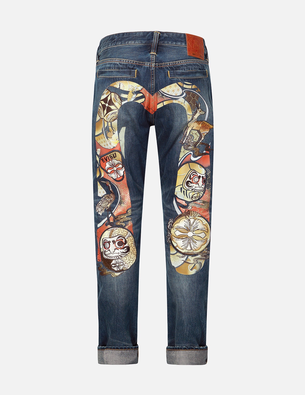 HANAFUDA DARUMA DAICOCK EMBROIDERY CARROT FIT DENIM JEANS #2017