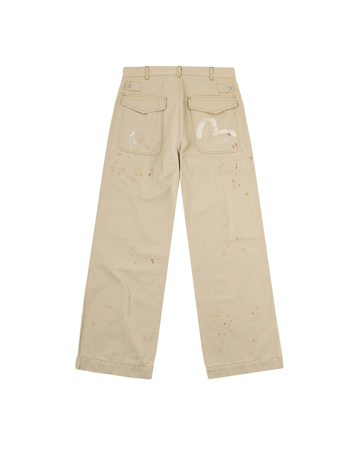 2EAEJM5PT6120RXCT These flight pants are the new trendsetters, radiating avant-garde artistic vibes! Inspired by military pilot trousers, they feature a splash-ink design that exudes carefree creativity. Practical yet stylish rear patch pockets and a distinctive seagull print add unique personality. Slip them on to perfectly blend ruggedness with fashion. - Relax fit - 100% Cotton - Splash-ink design - Hand-painted seagull print - Button fly, multi-pockets