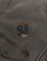 2EAEJM5DJ6042XXDQ This jacket features a deep gray tone, exuding a sophisticated yet trendy vibe, with a heavy wash process imparting a unique worn-in texture that radiates retro and wild street appeal! Multiple brand element badge prints are meticulously placed on the chest and sleeves, adding depth and brand recognition. The striking seagull applique on the back, crafted with 3D techniques, delivers a powerful visual impact. The two-way zipper design not only ensures easy wear and removal but also allows for versatile styling, seamlessly blending practicality with avant-garde flair to create a trendsetting focal point of attitude and individuality! - Regular fit - 99% Cotton, 1% Elastane - Heavy washed - Multi logo badges print - Seagull applique - Two-way zip, 4 pockets, ribbed trims
