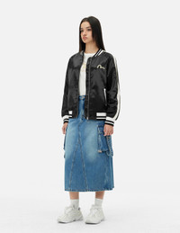 2ESHTW5JK4005LFSN This Souvenir jacket features a uniquely crafted design, with a beautifully embroidered Seagull on the front, embellished with sparkling rhinestones for a touch of luxury. The back showcases the new season's theme elements, including the resilient hummingbird and the beautiful magnolia flower embroidery. The designer skillfully uses gold and silver embroidery threads and metallic materials, giving this jacket a distinctive visual depth and texture. - Loose fit - 100% Polyester - Seagull embroidery and rhinestone embellishments - Hummingbird and magnolia flower embroidery - Long sleeves, zip fastening, 2 pockets, stripe ribbed trims