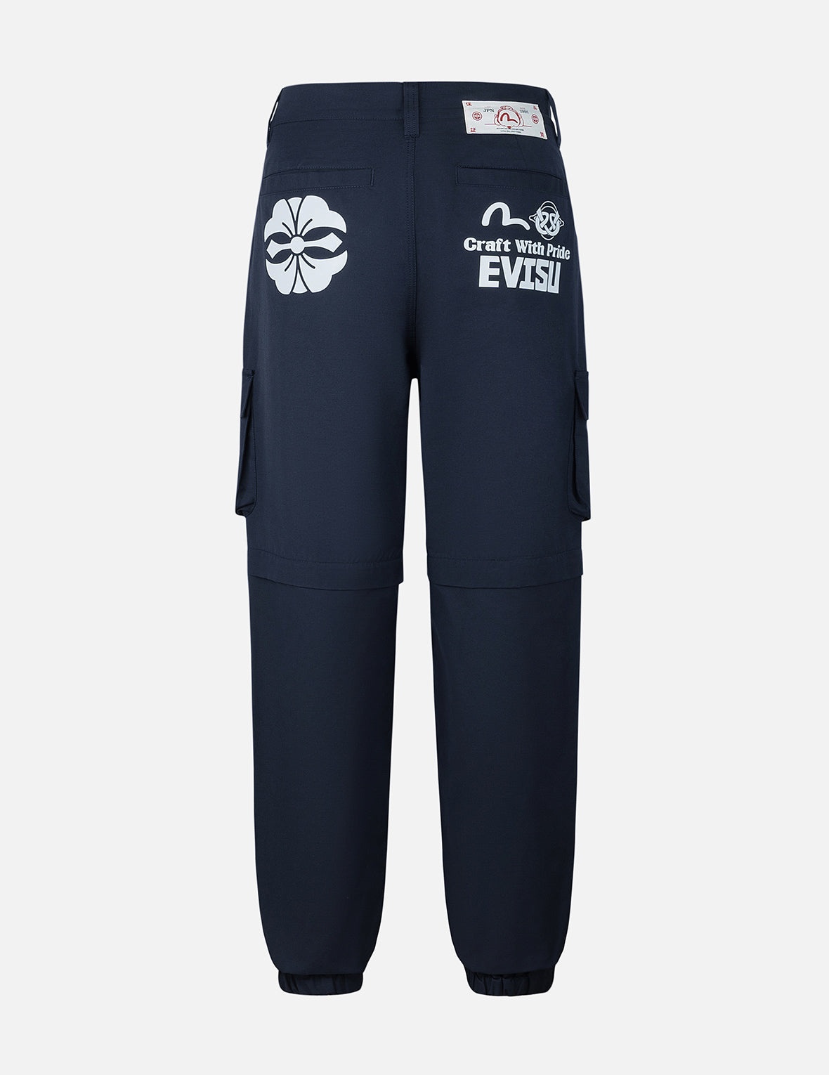 Kamon and Logo Prints Detachable Leg Panel Fashion Fit Woven Cargo Jogger