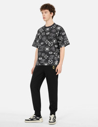 Kamon Embroidery and Logo Brocade Appliqué Regular Fit Sweatpants