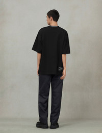 2ESGNM5TS5114OSCT This T-shirt features the EVISUKURO logo printed on both the front and back necklines, showcasing the brand's unique style. The chest design combines printed and embroidered Kamon, adding rich texture and personality, making it suitable for various casual outfits. - Oversized - 100% Cotton - EVISUKURO print - Kamon print and embroidery