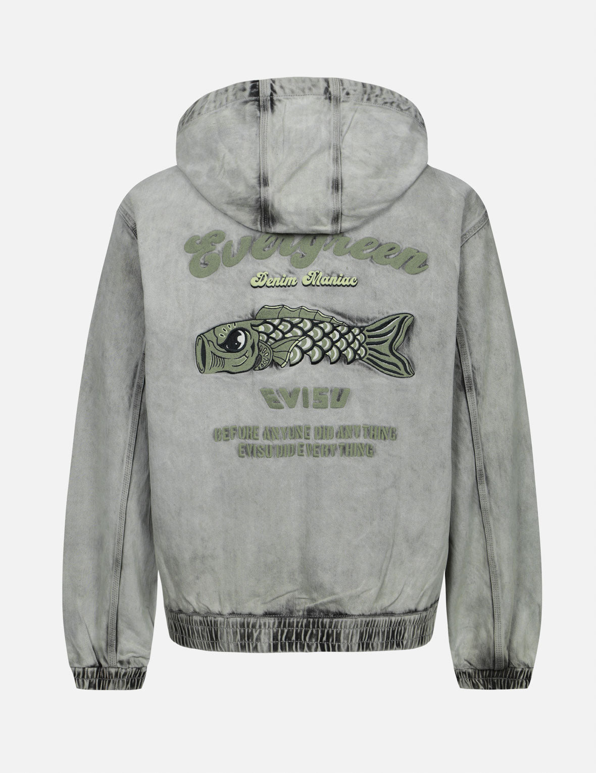 KOINOBORI AND SEAGULL EMBROIDERY LOOSE FIT HOODED DENIM JACKET