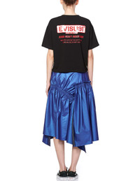 1EAHTW9SK213FF Mastering stylish yet feminine looks, EVISU presents this asymmetric layered skirt for the ladies. Made with blue pearlized polyester fabric, the skirt features EVISU logo print on the back and seagull on the front. Team yours up with a cropped top for a cool take. - 100% Polyester - Loose fit - Asymmetric design - EVISU logo and seagull print
