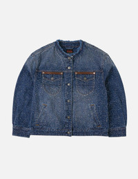 Leather Trim Fashion Fit Collarless Denim Jacket
