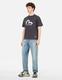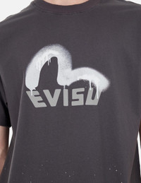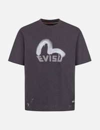 2ESHTM5TS1136RXCT Inspired by street culture, this EVISU T-shirt features a logo print paired with a graffiti-style Seagull, and the bottom is adorned with splattered ink, showcasing a unique street style and personality. - Relax fit - 100% Cotton - Logo and Seagull print