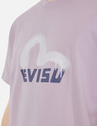 2ESHTM5TS1136RXCT Inspired by street culture, this EVISU T-shirt features a logo print paired with a graffiti-style Seagull, and the bottom is adorned with splattered ink, showcasing a unique street style and personality. - Relax fit - 100% Cotton - Logo and Seagull print
