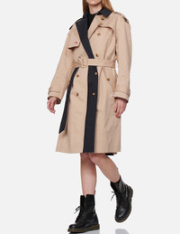 2EAHTW1CT226LFCT EVISU’s trench coat is tailored from Gabardine fabric - a water-proof one from Japan - in beige and dark navy blocking for a trendy look. Its front panel is decorated with a red seagull, while the back panel is embroidered with EVISU logo and slogan to channel a couture vibe. - Fashion fit - Fabric blocking design - Seagull, EVISU logo and slogan embroidery - Long sleeves, 2 pockets, detachable belt - Button fastening - Custom Made EVISU Heritage Tag - Body: 100% Cotton; Lining: 100% Polyester CARE DO NOT WASH DO NOT BLEACH DO NOT TUMBLE DRY COOL IRON ON REVERSE SIDE IF NEEDED STEAM IRONING MAY CAUSE IRREVERSIBLE DAMAGE DRY CLEAN ONLY REMOVE BELT PRIOR TO CLEANING BELT HAND WASH