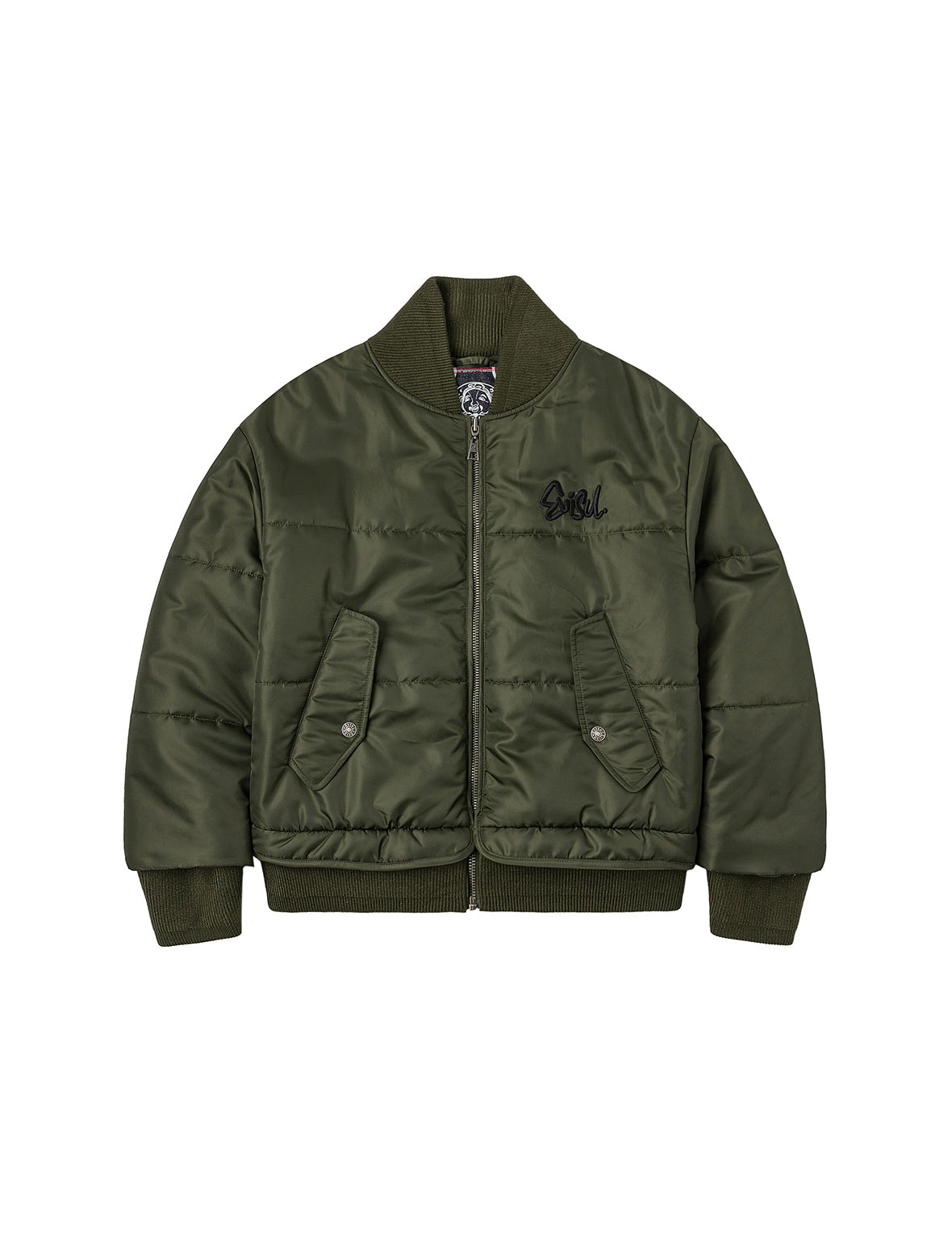 2EAHTM5JK7006FFYQ This bomber jacket is made from soft and comfortable fabric, lightweight yet warm, featuring the embroidered cursive logo EVISU on the chest, showcasing the brand's unique charm and personality through its simple design and exquisite craftsmanship. - Fashion fit - 100% Polyamide - Logo embroidery - Zip fastening, 2 pockets, ribbed trims