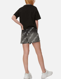 2ESGNW2DS204XXCT EVISUKUROs degrade denim shorts are cut for a regular fit with frayed hem and distressed details. Channeling the bold and fearless spirit of the brand, the pair is emblazoned with allover EVISUKURO logo jacquard in fading style. - Regular fit - Allover EVISUKURO logo jacquard - Zip fly, 4 pockets, frayed hem, distressed details - EVISUKURO leather patch