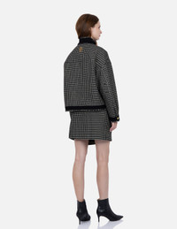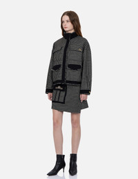 2EAHTW2SK160FFPL Tailored from metallic wool-blend in check pattern with fabric blocking details, EVISU’s asymmetric skirt is finished with Kamon and slogan embroidery to elevate your look. - Fashion fit - Fabric blocking design - Kamon and slogan embroidery - Zip fly, 1 pocket - Fabric A: 34% Polyester, 27% Wool, 22% Acrylic, 14% Nylon, 3% Lurex; Fabric B: 100% Cotton; Lining: 100% Polyester