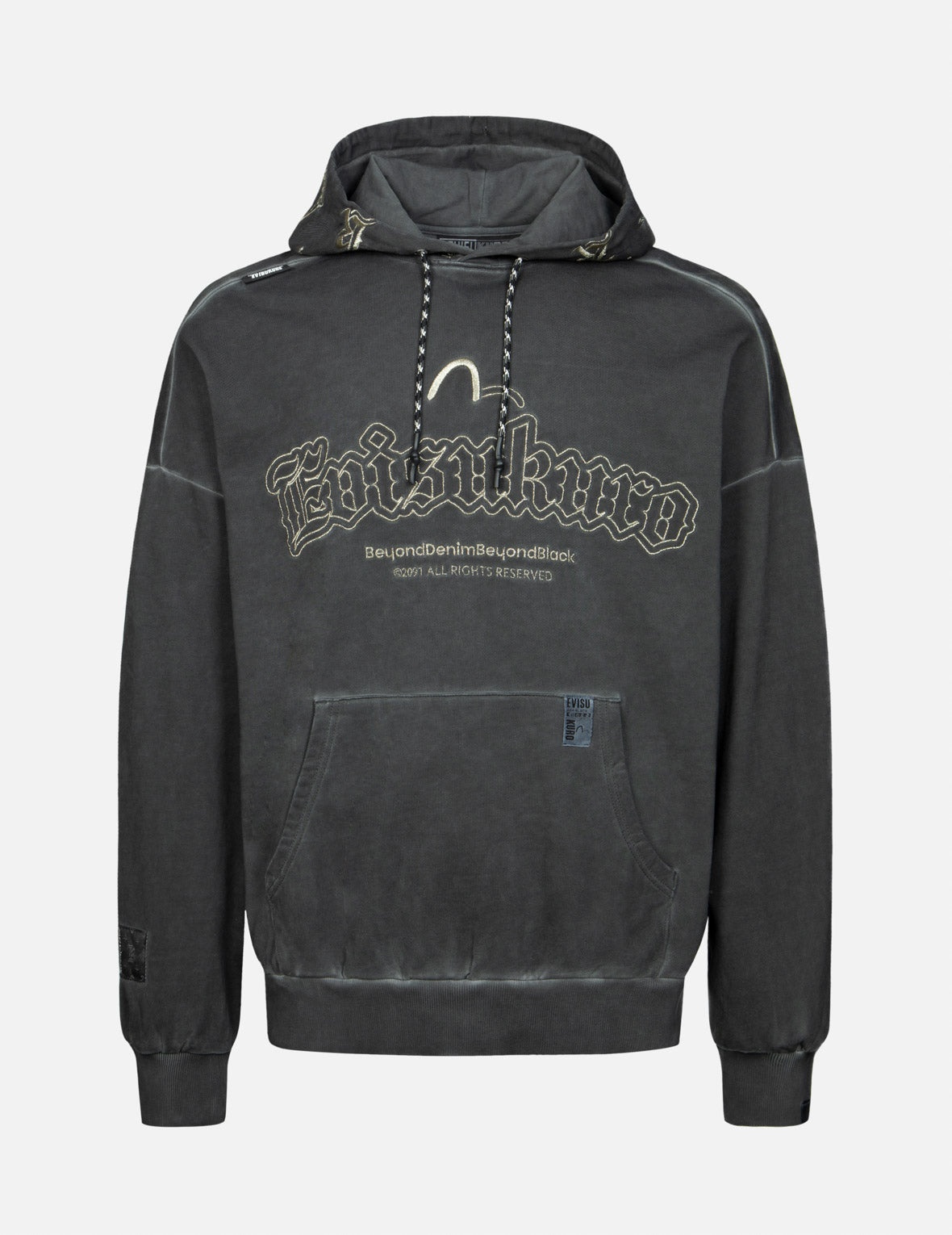 2EAGNM3SW5164OSCT It wouldn't be an EVISUKURO design if there isn't a twist. This hoodie is designed with monogram embroidered hood to elevate your comfort and style at once. Made with pigment dyed fabric, this piece will upgrade your weekend outfits without forgoing versatility. - 100% Cotton - Oversized fit - Monogram embroidered hood - Seagull, slogan and logo embroideries - Pigment dyed fabric