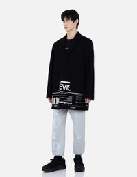 2EAGNM2BZ706OSWX Look effortlessly cool in this coat from EVISUKURO. It is crafted with multi branded graphics prints at the hem along with tonal seagull embroidery to give your street outfit a retro twist. - 78% Wool, 22% Nylon - Oversized fit - Multi logo and slogan prints - Seagull embroidery