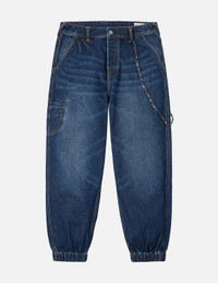 2EAHTM5JO1077LFDN These denim joggers feature a washed effect, with practical multi-pocket designs adorned with Seagull crane patterns. In addition to the pants themselves, EVISU has specially paired them with metal and woven accessories, enhancing the overall fashion sense and attention to detail, showcasing the brand's dedication and creativity. - Loose fit - 100% Cotton - Washed - Seagull crane print - Zip fly, Multi-pocket