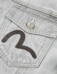 2ESHTM4DJ7004XXDN This jacket is crafted from 12-ounce gray denim fabric, showcasing a timeless shade. With meticulous attention to detail, it features a multi-pocket layout, each pocket boasting a distinct color for added style. The innovative semi-rounded corner design of the patch pockets adds a contemporary touch. Contrasting the fabric, gray original cowhide is used for the pockets. Adorned with a Japanese vintage pattern intricately embroidered with metallic threads, the craftsmanship and quality shine through. The exquisite embroidery elevates the jacket, making it truly unique and refined, with a distinct personality. FIT & STYLING: REGULAR CARE HAND WASH COLD INSIDE OUT MILD DETERGENT DO NOT BLEACH HANG DRY ONLY COOL IRON ON REVERSE SIDE IF NEEDED STEAM IRONING MAY CAUSE IRREVERSIBLE DAMAGE DO NOT DRY CLEAN DO NOT IRON ON PRINT