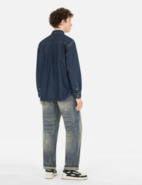 Multi-Pocket with Brocade Patch Relax Fit Denim Shirt