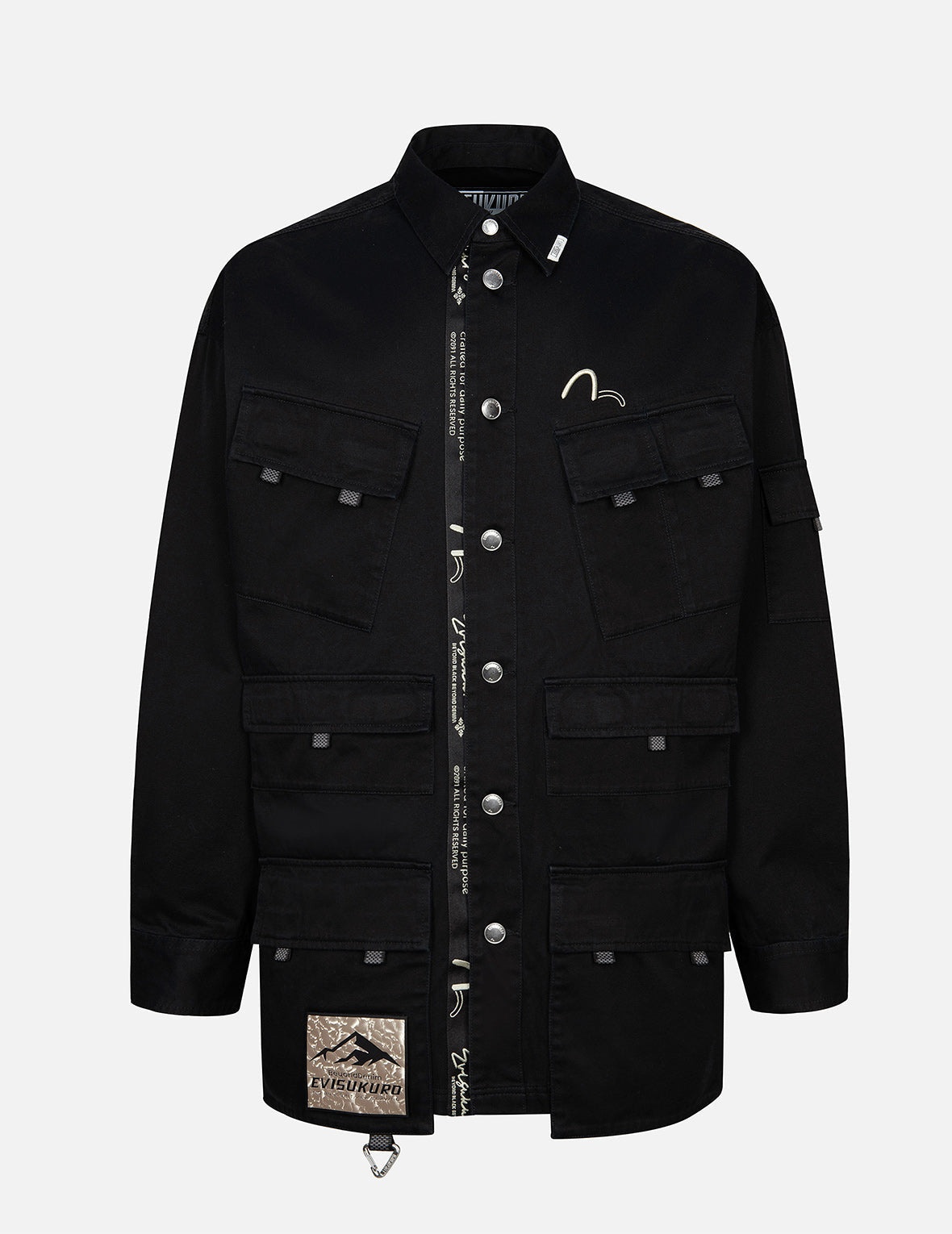 2EAGNM3SJ5116LFCT The epitome of utilitarian cool, this shirt jacket is featuring a gradient metallic seagull and logo print to give your casual outfit a cool twist. Crafted with multiple flap pockets, this piece helps you put together an effortlessly stylish look on weekends. - Loose fit - 100% Cotton - Gradient metallic logo and seagull print - Slogan and seagull embroideries - Multiple pockets