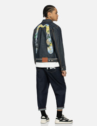 2ESHTM4DJ7005XXDP This denim jacket is a luxurious and unique choice! Combining pandas, bamboo, and waves in a Japanese-inspired design, this jacket is made with high-quality 12.5-ounce red-edge denim fabric. It showcases the brand's craftsmanship with a digital print on the back and embroidery techniques on the front. The adorable panda image not only represents power and wealth but also symbolizes good fortune. FIT & STYLING: REGULAR CARE HAND WASH COLD INSIDE OUT MILD DETERGENT DO NOT BLEACH HANG DRY ONLY COOL IRON ON REVERSE SIDE IF NEEDED STEAM IRONING MAY CAUSE IRREVERSIBLE DAMAGE DO NOT DRY CLEAN DO NOT IRON ON PRINT