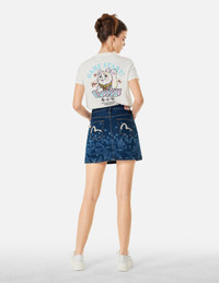 PIXEL SEAGULL EMBROIDERY AND PRINT REGULAR FIT DENIM SKIRT