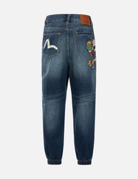 2ESHTM4JO1043WLDN The Godhead pattern has always been one of the iconic symbols of the EVISU! To align with the theme of playfulness and enjoyment for this season, the designers have incorporated a playful Godhead design on the back pocket. This design not only exudes a rich texture but also showcases the latest fashion elements and the unique style of the brand. FIT & STYLING: WIDE LEG CARE MACHINE WASH COLD INSIDE OUT AND SEPARATELY DELICATE CYCLE DO NOT BLEACH HANG DRY ONLY COOL IRON ON REVERSE SIDE IF NEEDED STEAM IRONING MAY CAUSE IRREVERSIBLE DAMAGE DO NOT DRY CLEAN DO NOT IRON ON PRINT