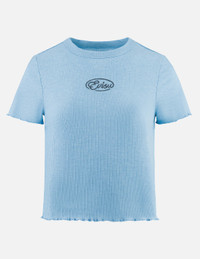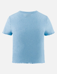 2ESHTW5TS4046FFCT This straight stripe textured T-shirt features a unique rope twist effect showcasing the logo embroidery, making it both distinctive and stylish. The ruffled sleeve design adds a touch of femininity, while the overall silhouette is simple yet full of personality. It's perfect for everyday casual wear and vacation outfits, making it a standout piece in your summer wardrobe. - Fashion fit - 64% Polyester, 24% Viscose, 12% Elastane - Rope twist logo embroidery - Ruffled sleeves