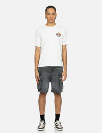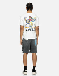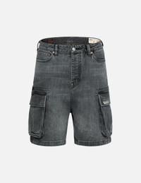 2ESHTM4DS1048FFDP EVISU's heavyweight black denim shorts feature utility patch pockets on both sides, while the washed treatment gives the pants a retro whisker detail, embodying an industrial-inspired fashion. The back pockets are adorned with seagull and brand flag-shaped prints, adding a playful touch. FIT & STYLING: FASHION CARE MACHINE WASH COLD INSIDE OUT AND SEPARATELY DELICATE CYCLE DO NOT BLEACH HANG DRY ONLY COOL IRON ON REVERSE SIDE IF NEEDED STEAM IRONING MAY CAUSE IRREVERSIBLE DAMAGE DO NOT DRY CLEAN DO NOT IRON ON PRINT
