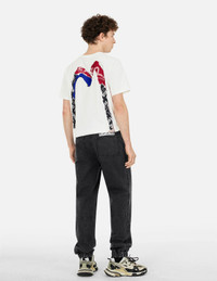 2ESHTM5PO1131STCT Designed with a straight cut, these woven joggers come with spacious front pockets, offering both functionality and fashion. The legs are embellished with exquisite seagull and Kamon embroidery, providing a touch of refined detail. The brand logo print on the back boosts visibility, making it easy to express individuality and flair. - Straight fit - 100% Cotton - Seagull and Kamon embroidery - Logo print - Zip fly, 4 pockets