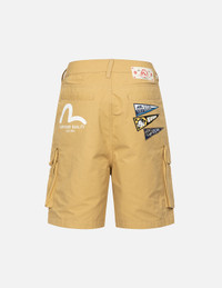2ESHTM4SH1029FFCP Industrial style is one of the key themes for EVISU. This pair of cargo shorts features a multi-pocket design, not only enhancing the sense of fashion but also adding practicality, making it a must-have item for the summer. They are further adorned with a flag pattern designed with brand elements, further enhancing the brand's style and charm. FIT & STYLING: FASHION CARE MACHINE WASH COLD INSIDE OUT DELICATE CYCLE DO NOT BLEACH HANG DRY ONLY COOL IRON ON REVERSE SIDE IF NEEDED STEAM IRONING MAY CAUSE IRREVERSIBLE DAMAGE DO NOT DRY CLEAN DO NOT IRON ON PRINT