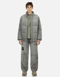 Seagull and Slogan Embroidered Velvet Down Jacket