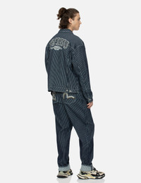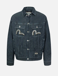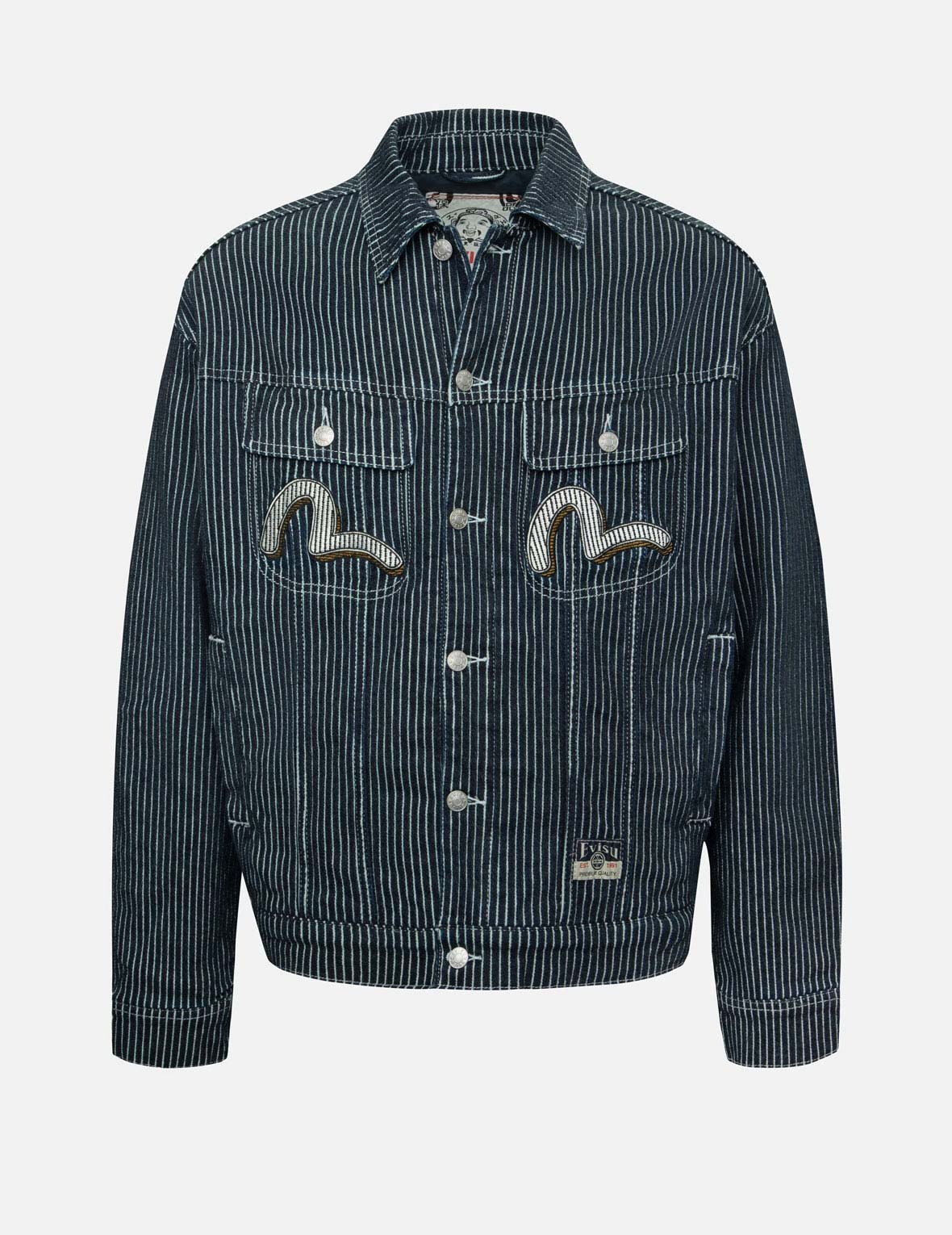 2EAHTM4DJ1010LFDN Featuring a corduroy straight grain design, this denim jacket is embellished with striped Seagull embroidery on the front and horizontal stripe logo with the Wheel of Wisdom embroidery on the back, creating a contrasting effect. This unique design style combines different pattern elements, showcasing a blend of fashion and personality, adding a unique charm to your outfit. FIT & STYLING: LOOSE CARE MACHINE WASH COLD INSIDE OUT AND SEPARATELY GENTLE CYCLE DO NOT BLEACH HANG DRY ONLY COOL IRON ON REVERSE SIDE IF NEEDED STEAM IRONING MAY CAUSE IRREVERSIBLE DAMAGE DO NOT DRY CLEAN